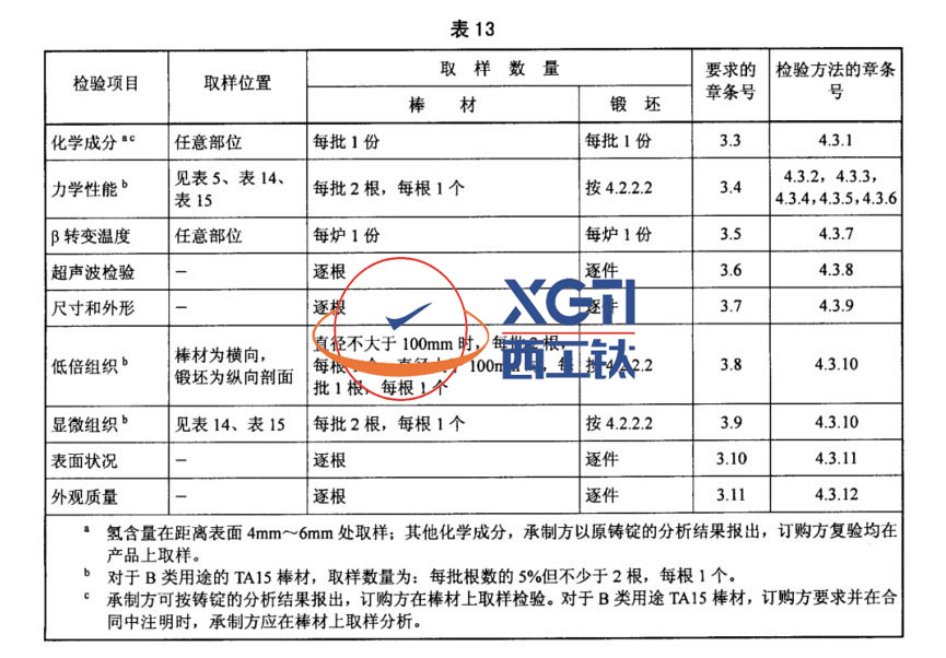 b)產(chǎn)品名稱、牌號(hào)、狀態(tài)、規(guī)格和數(shù)量,B類用途的TA15鈦合金棒材訂貨時(shí),應(yīng)予以注明;